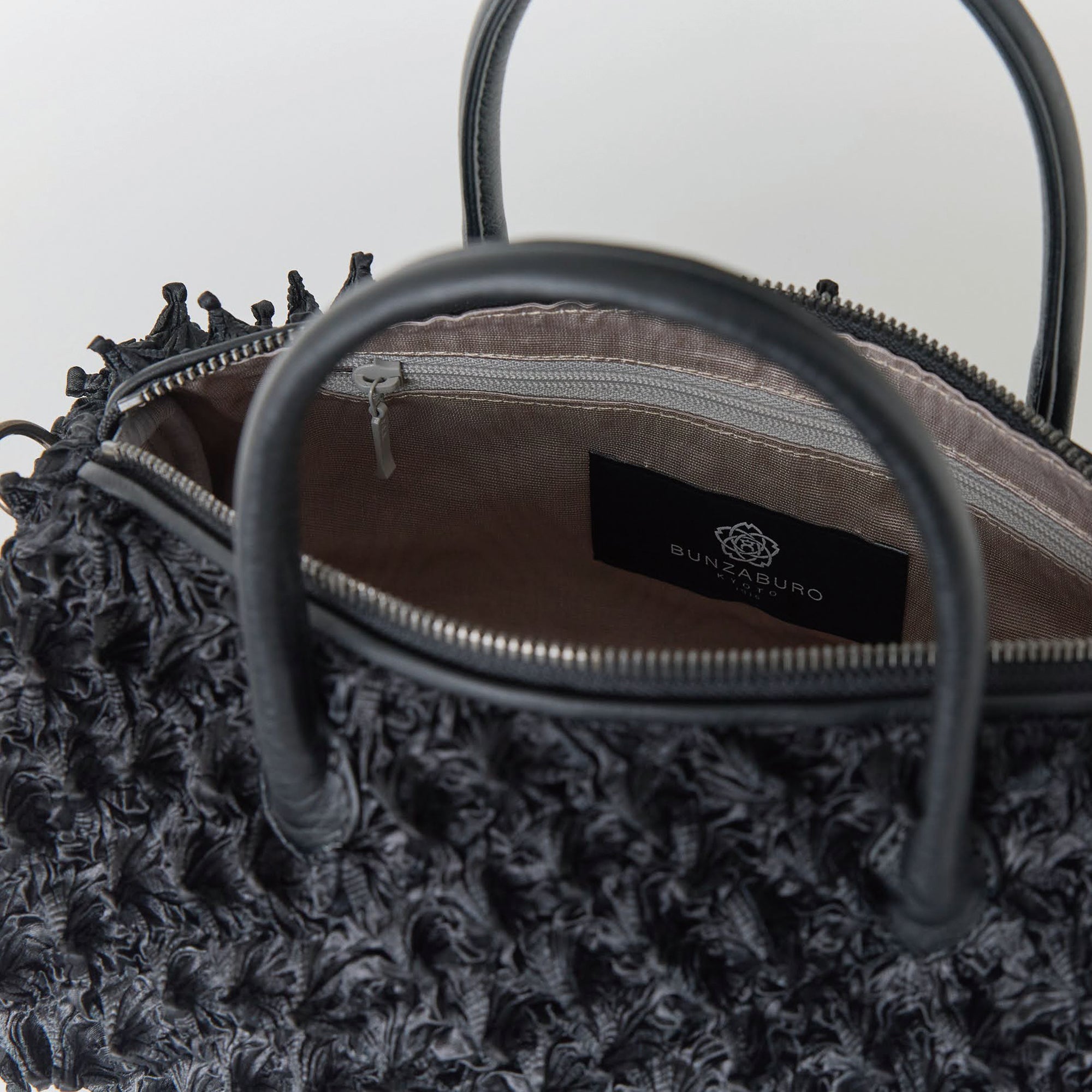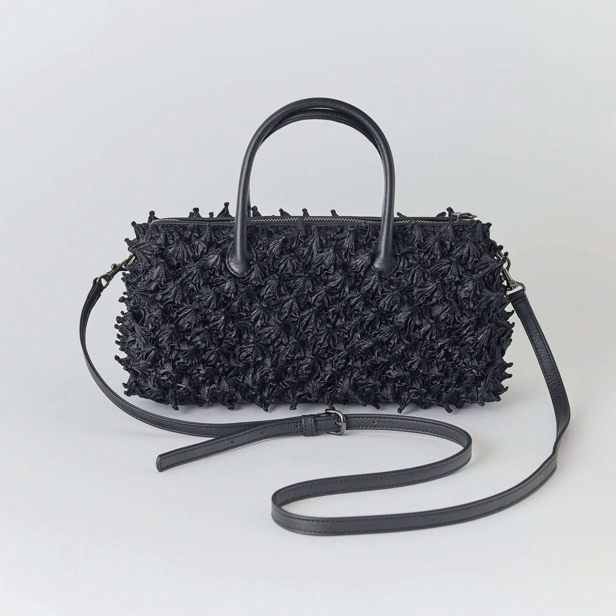 *This bag is made from delicate shibori-dyed fabric. To preserve the shibori pattern, the main body and fabric are partially sewn together. Please be careful when using it, as the fabric may snag on clothing accessories or other items, causing damage.