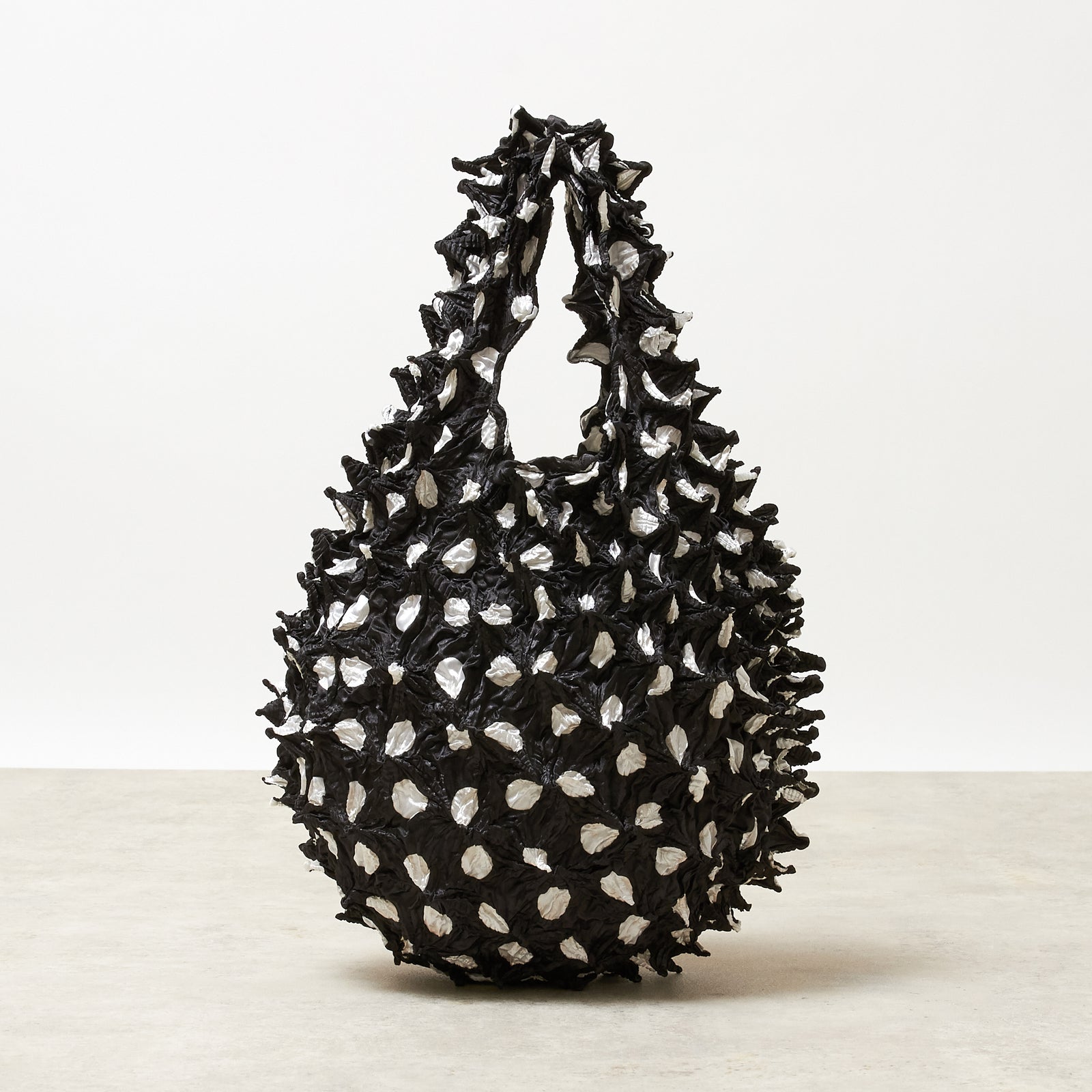"Petit Bag" are medium size and extend to A4 size. The spiky Bai shibori is the standard texture.