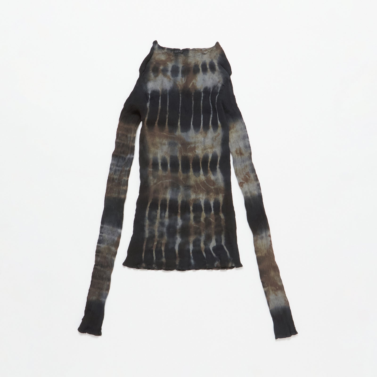 You can choose from squishy tops that take advantage of the spiky Shibori texture, tie-dyed and body-fitted T-shirt-like items, and avant-garde and eye-catching items.