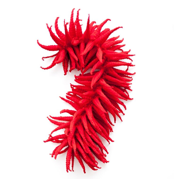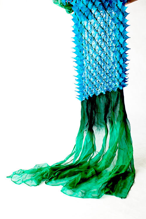 Since the third generation, Kazuo Katayama, took over the business in 1992, he has further accelerated the creation of products that fuse modern fashion and art, while preserving his mission as a bearer of tradition by reprinting the Honza Kanoko Shibori technique, which had been discontinued since the Edo period. For example, he has not stretched out tie-dyeing, which was originally used to enjoy the patterns, but now he shows it as a unique form and dares to use the back side of the fabric as the front side. He creates scarves and fashions by making use of the large, protruding form of the tie when the thread is untied. It is proposed as "Wearable Art" where the wearer can become an artistic being. Surprise and joy coexist there.