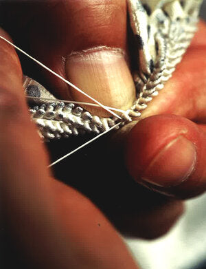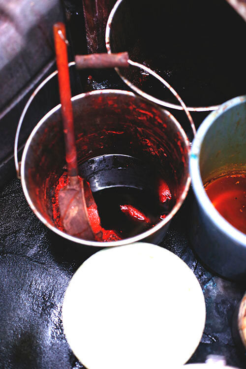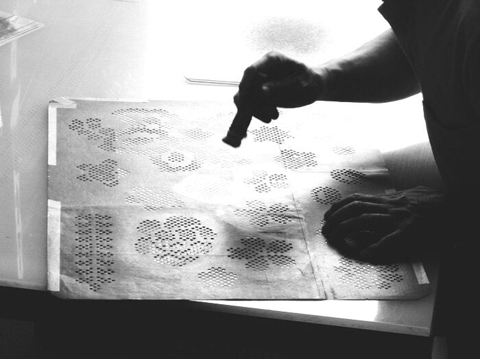 The powerfully drawn cherry blossom pattern is the emblem of the Yuzen, one of Japan's best-known traditional dyeing technique which was originated in the 17th century. Our founder, Bunzaburo was trained by Yuzen group to become independent from his apprenticeship. In the Meiji era (1868-1912), it was common practice for kimono merchants to sell something different from Yuzen in order not to compete with the main line. However, cherry blossom pattern was handed over to the young beginners as a gift who were about to embark on the rough sea of business. Each of Bunzaburo's colleagues, who were divided into different franchise, added their own unique twists to the same cherry blossom pattern and used them as their logo.
