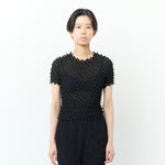 ツンツンの半袖トップス クルーネック シフォン/無地
