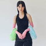 ツンツンのホルターネックトップス サテン無地